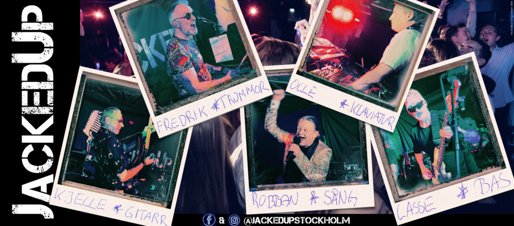 JackedUp ser till att det blir en fartfylld partykväll med en ständigt uppdaterad repertoar som innehåller kända hits från både förr och nu. Musiken framförs med spelglädje, finess och med stor delaktighet hos publiken genom dans, allsång och hålligång!