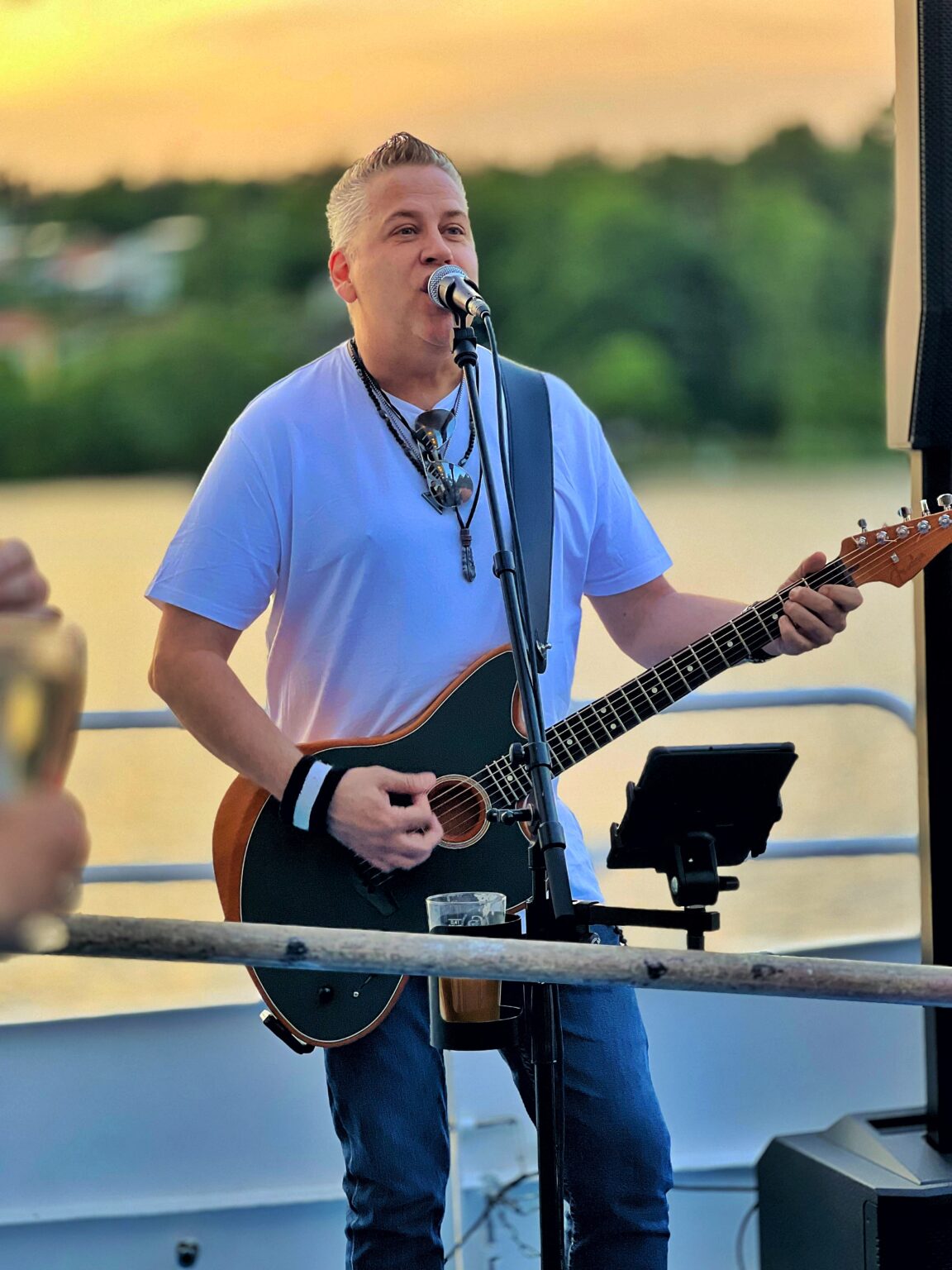 När middagen är avklarad höjer vi tempot. En av våra skickliga trubadurer tar över scenen som bjuder på en härlig blandning av rock, pop och schlager – låtar som väcker minnen, skapar allsång och får det att spritta i benen, även på den mest motsträvige dansaren. Och inte att förglömma det som kanske är det bästa av allt – en båttur i världens vackraste skärgård.